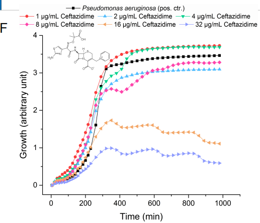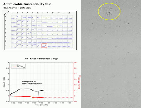 由于超高的靈敏度,系統(tǒng)能夠深入了解樣本動態(tài),因?yàn)閱渭?xì)胞水平的變化是量化的。例如通過觀察生長曲線的形狀,可以很容易地瀏覽整塊培養(yǎng)板來快速識別出抗性亞種群。