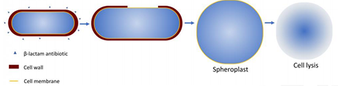 肽聚糖合成抑制劑,如亞胺培南,一種β-內(nèi)酰胺抗生素,當(dāng)暴露于亞MIC或MIC濃度時,會導(dǎo)致細(xì)菌膨脹并形成大而脆弱的球形體。
