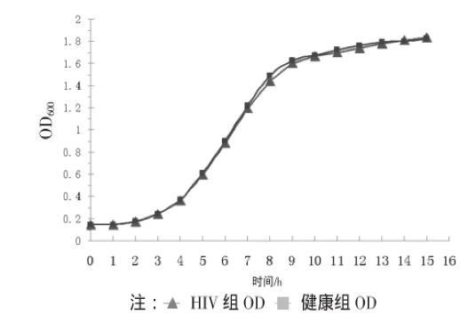 圖4酶標(biāo)儀法測定H I V感染者和健康人群白假絲酵母菌生長曲線
