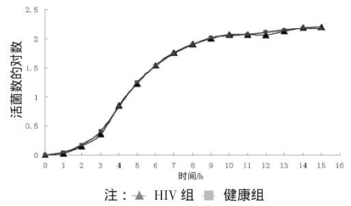 圖2血球計(jì)數(shù)板計(jì)數(shù)法測定H I V感染者和健康人群白假絲酵母菌生長曲線