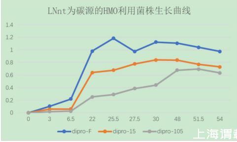 應(yīng)用Biosense全自動生長曲線分析儀監(jiān)測HMO利用菌株的生長過程,篩選的長雙歧桿菌嬰兒亞種dipro-F,dipro-15和dipro-105能夠高效利用HMO。