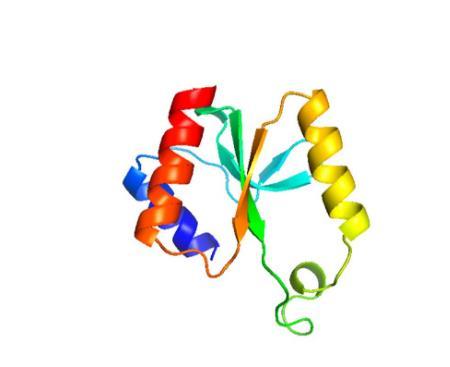圖4、Gp232的92個殘基(245aa-344aa)的預(yù)測其三級結(jié)構(gòu)。圖像由彩虹N端-C端著色。