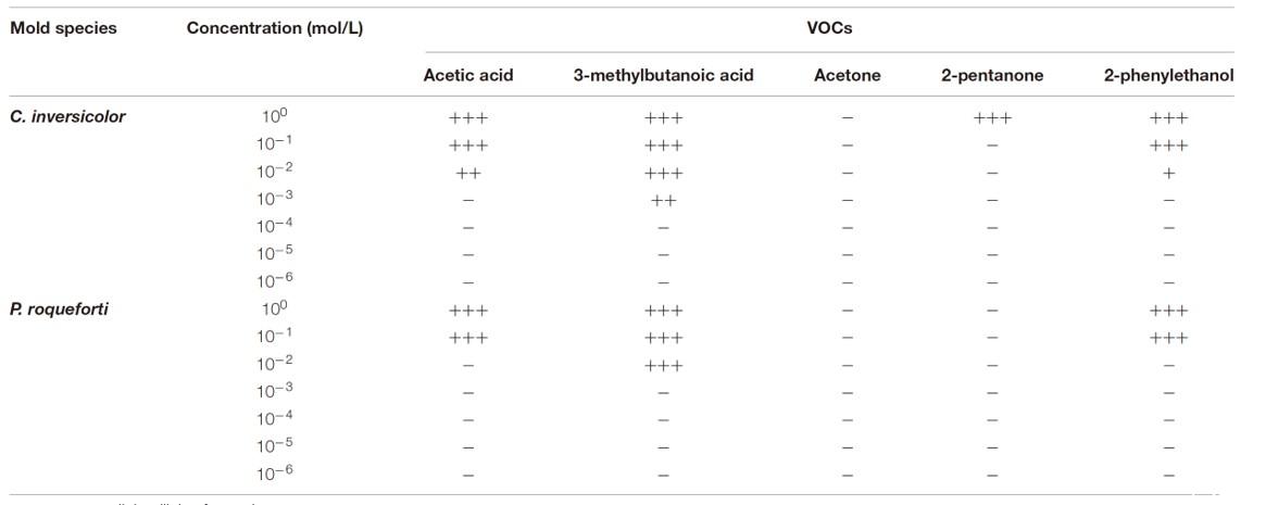 研究的結(jié)果表明D.hansenii的抗真菌活性是復(fù)雜的,并且可能是由幾種抑制性VOC的協(xié)同和/或相加作用產(chǎn)生的,而不是單一化合物的作用。同樣,已證明經(jīng)證實的生物防治酵母W.anomalus BS91和M.pulcherrima MPR3對包裝新鮮水果中的采后病原霉菌的生長抑制是由VOC和CO 2的協(xié)同作用引起的。此外抑制鐮刀菌屬。在植物乳桿菌(以前稱為植物乳桿菌)的無細胞上清液中生長)已被證明不是由乳酸菌產(chǎn)生的乳酸單獨產(chǎn)生的。