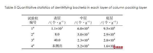 Table 5 Quantitative statistics of denitrifying bacteria in each layer of column packing layer