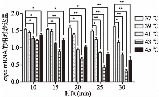 2.3溫度誘導對cspc mRNA基因表達的影響