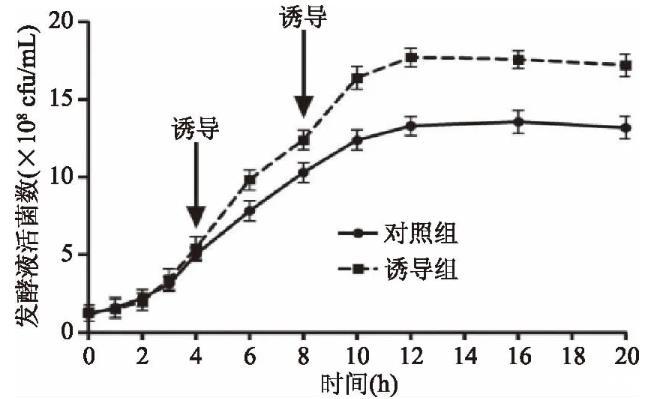 1.2.3生長曲線測定四級發(fā)酵液按不同的時間點(0、1、2、3、4、6、8、10、12、16、20 h)取樣,測定發(fā)酵液活菌數(shù),制作生長曲線。