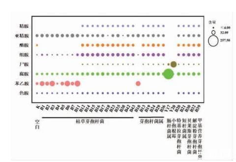圖3產(chǎn)胺菌株培養(yǎng)液中生物胺含量(mg/mL)