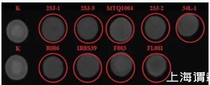 選取熒光強度弱于空白組的菌株,初步斷定為降解生物胺菌株(圖5),共篩選出降解生物胺菌株9株,其中酵母菌4株,乳酸菌4株,細菌1株。
