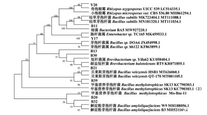 圖2產(chǎn)胺菌株的系統(tǒng)發(fā)育樹