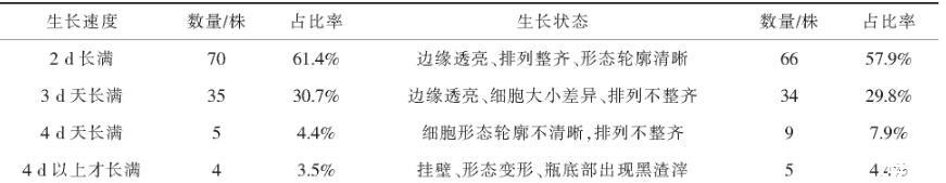 表1 MDCK單克隆細胞生長速度和狀態(tài)統(tǒng)計表