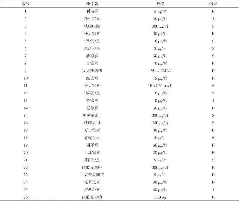 注:“S”為敏感;“I”為中度敏感;“R”為不敏感。