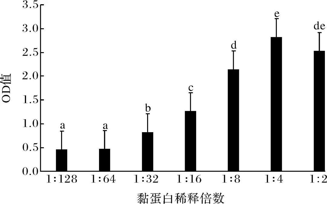 圖4菌體與HRP-黏蛋白濃度的黏附效果