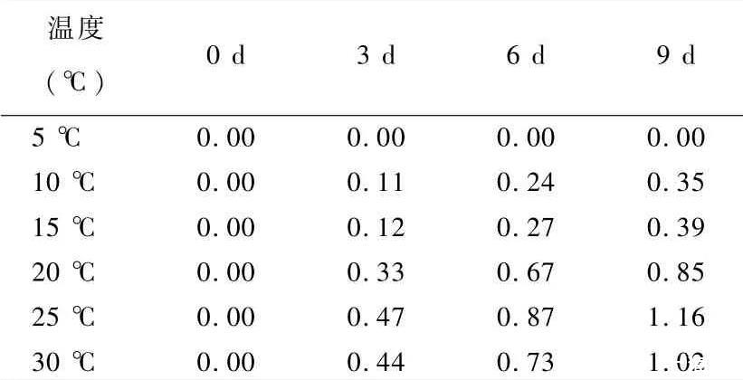 表1菌核在不同溫度下產(chǎn)生菌絲的狀況