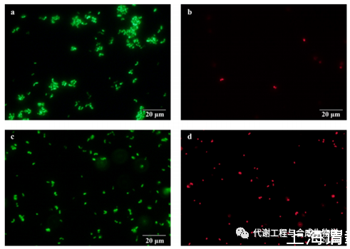 為了確定超聲處理是否影響谷氨酸棒狀桿菌細(xì)胞膜的完整性,我們結(jié)合熒光顯微鏡使用了活性染色來(lái)進(jìn)行觀察。應(yīng)用PI和SYTO9雙染時(shí),細(xì)胞膜完整的細(xì)胞顯示綠色熒光,而受損的細(xì)胞膜允許PI流入,導(dǎo)致呈現(xiàn)紅色熒光。如圖所示,與未處理的對(duì)照組相比,超聲下發(fā)出綠色熒光的細(xì)胞數(shù)量減少,而發(fā)出紅色熒光的細(xì)胞數(shù)量增加。這說(shuō)明超聲波處理對(duì)谷氨酸棒狀桿菌的細(xì)胞膜造成了一定程度的損傷。膜通透性的增加也會(huì)導(dǎo)致L-亮氨酸的胞內(nèi)外排,從而減緩L-亮氨酸生物合成途徑中關(guān)鍵基因的轉(zhuǎn)錄衰減和關(guān)鍵酶的反饋抑制。這是超聲提高L-亮氨酸產(chǎn)量的原因之一。此外,穩(wěn)定的微泡振蕩還會(huì)導(dǎo)致H2O2和其其他活性氧的產(chǎn)生,進(jìn)一步使脂質(zhì)和膜蛋白過(guò)氧化。脂質(zhì)和膜蛋白過(guò)氧化可能是膜通透性增加的原因之一。膜滲透性增強(qiáng)的另一個(gè)可能原因是空化,這直接導(dǎo)致了超聲處理產(chǎn)生的力學(xué)效應(yīng)。超聲在物理和化學(xué)層面上都能增加細(xì)胞膜的通透性。
