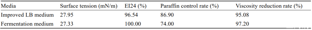 表1不同培養(yǎng)基中菌株B6的驅(qū)油性能評價