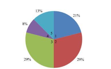 注:1:檢出值lg(cfu/g)≤1 log(cfu/g);2:1 lg(cfu/g)<檢出值lg(cfu/g)≤2 log(cfu/g);3:2 lg(cfu/g)<檢出值lg(cfu/g)≤3 log(cfu/g);4:3 lg(cfu/g)<檢出值lg(cfu/g)≤4 log(cfu/g);5:4 log(cfu/g)<檢出值lg(cfu/g)。
