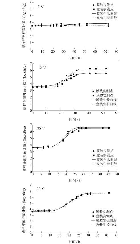 2.2在不同溫度及包裝條件下草莓中蠟樣芽孢桿菌生長(zhǎng)模型的建立