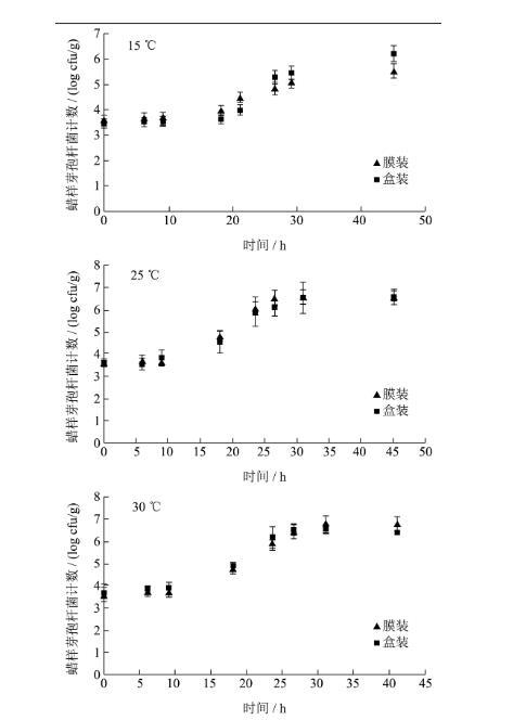 2.3在不同溫度及包裝條件對(duì)草莓中蠟樣芽孢桿菌生長(zhǎng)的影響