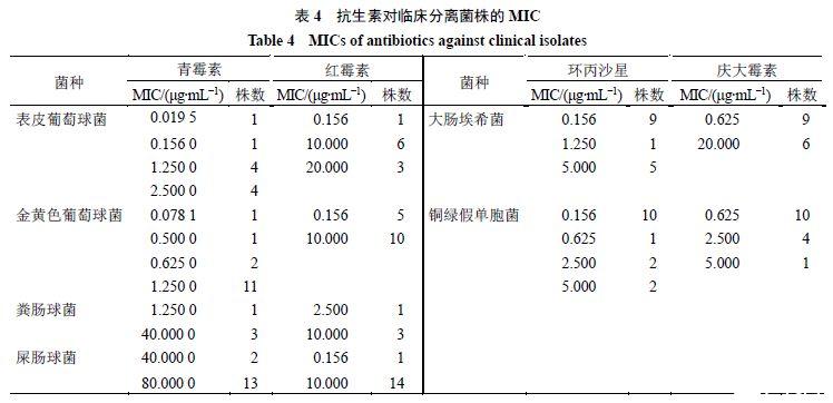 3.3抗生素對標準菌株和臨床分離菌株的MIC