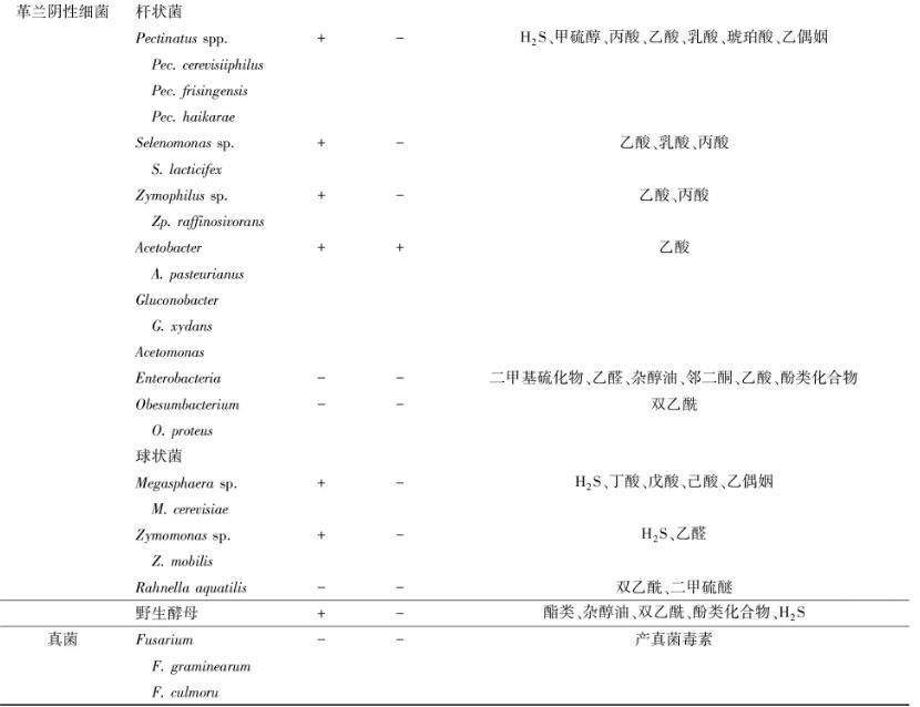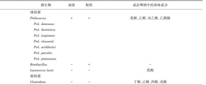 表1啤酒微生物及其對啤酒質(zhì)量的影響
