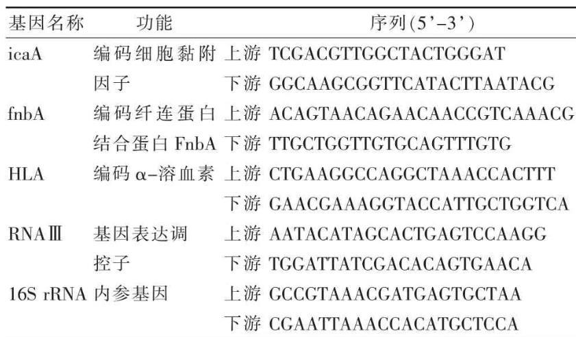 微量RNA 提取試劑盒RNeasy Mini Kit(QIAGEN),細(xì)菌RNA 提取試劑盒RNAprep pure Bacteria Kit,反轉(zhuǎn)錄試劑盒PrimeScript Kit,Premix Taq RT-PCR 系統(tǒng)(TaKaRa)。異硫氰酸熒光素(FITC)、葡萄糖均購自Sigma 公司;胰蛋白胨大豆肉湯(TSB)培養(yǎng)基購自北京陸橋技術(shù)有限責(zé)任公司。
