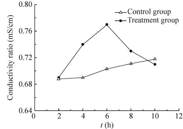 圖6納米銀處理時間對電導(dǎo)率含量的影響