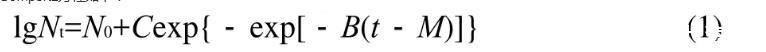 應(yīng)用SAS 9.1統(tǒng)計(jì)軟件,分別將在不同溫度下獲得的熱殺索絲菌的生長(zhǎng)數(shù)據(jù),用Gompertz模型擬合其生長(zhǎng)動(dòng)態(tài)。Gompertz方程如下: