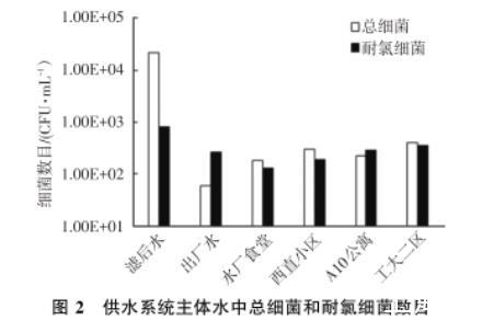 2.2供水系統(tǒng)主體水和生物膜中耐氯性細(xì)菌