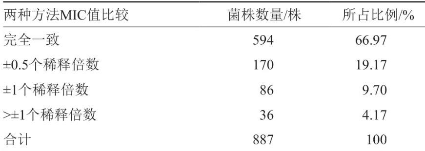 體外藥敏試驗是臨床選擇抗菌藥物治療的重要參考依據,準確的藥敏試驗對臨床極為重要。目前全世界關于多黏菌素的E-test法耐藥值折點問題仍無統(tǒng)一認識,而多黏菌素將越來越廣泛地應用于臨床多重耐藥革蘭陰性菌感染的治療。在本研究中,多黏菌素B藥敏條用于腸桿菌科檢測時,E-test法和微量稀釋法具有很高的一致性,說明E-test法多黏菌素藥敏條可用于臨床腸桿菌科體外藥敏檢測。