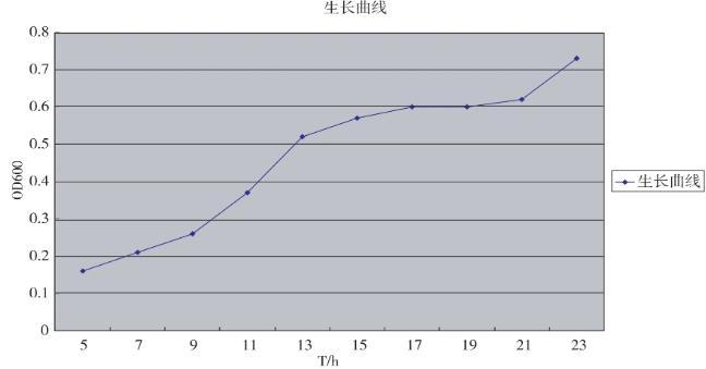 將篩選出的菌體利用分光光度計(jì)測(cè)定600 nm時(shí)培養(yǎng)液的OD值,并繪制出生長(zhǎng)曲線圖(如圖1)。