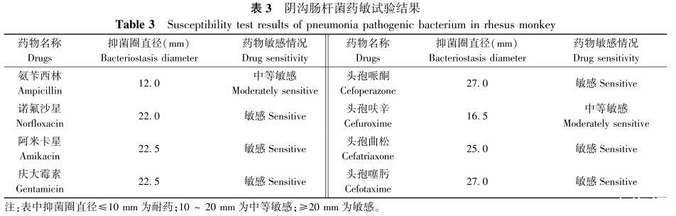 恒河猴肺中陰溝腸桿菌的分離鑒定及藥物敏感性試驗(yàn)——結(jié)果、討論