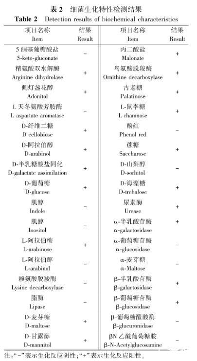 表2細(xì)菌生化特性檢測(cè)結(jié)果