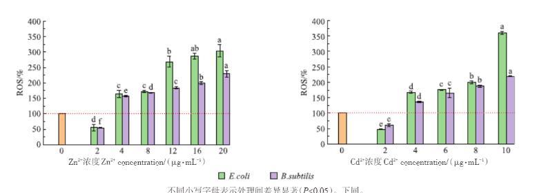 圖4 Zn2+和Cd2+對兩種細(xì)菌ROS產(chǎn)生量的影響