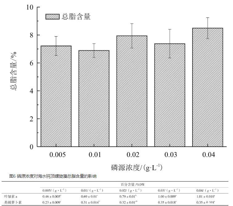 圖6磷源濃度對(duì)海水鈍頂螺旋藻總脂含量的影響
