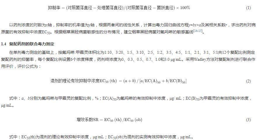 1.4復(fù)配藥劑的聯(lián)合毒力測定