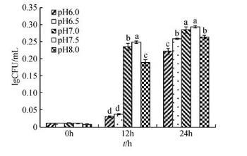 圖5殺鮭氣單胞菌在不同pH條件下培養(yǎng)12h、24h菌液A600值
