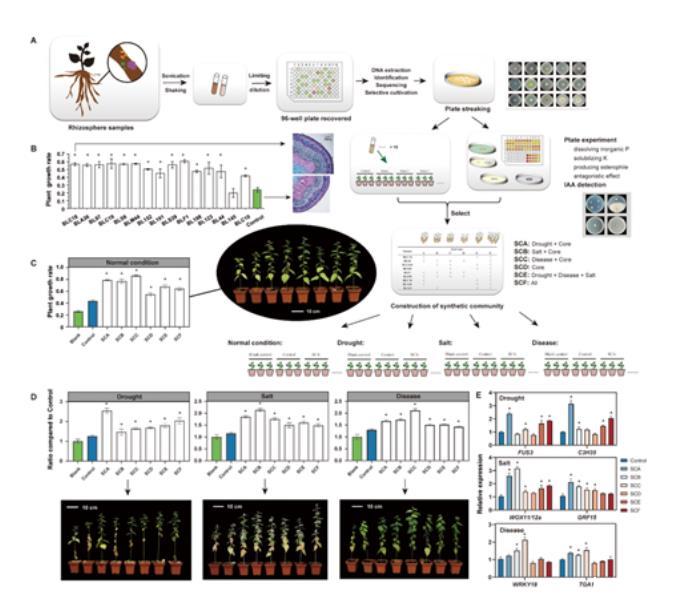 圖2:構(gòu)建合成微生物群落協(xié)助楊樹(shù)抵御逆境脅迫