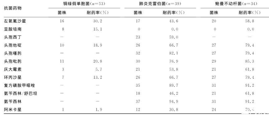 綜上分析,由于不同細(xì)菌對(duì)抗菌藥物的耐藥機(jī)制和耐藥性各不相同,因此臨床用藥需結(jié)合藥敏結(jié)果,避免抗菌藥物使用不當(dāng)而誘導(dǎo)產(chǎn)生多重耐藥菌株。