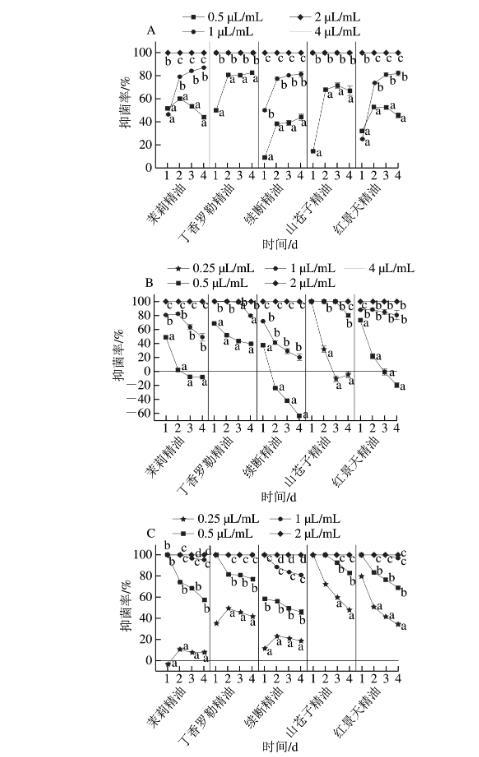 25種天然植物精油對藍(lán)莓致病菌生長曲線、抑制作用(三)