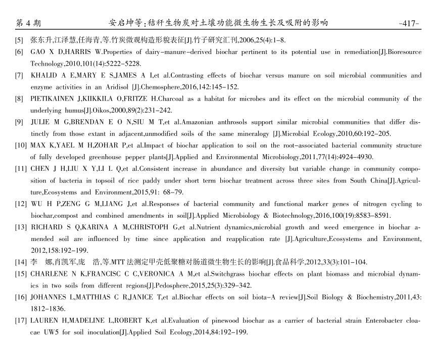 秸稈生物炭對土壤功能微生物生長及吸附的影響
