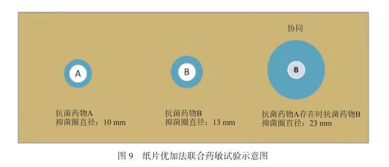 圖9紙片優(yōu)加法聯(lián)合藥敏試驗示意圖