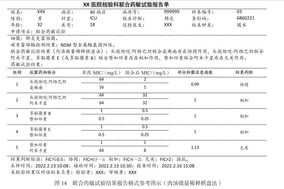 圖14聯(lián)合藥敏試驗結(jié)果報告格式參考圖示(肉湯微量稀釋棋盤法)