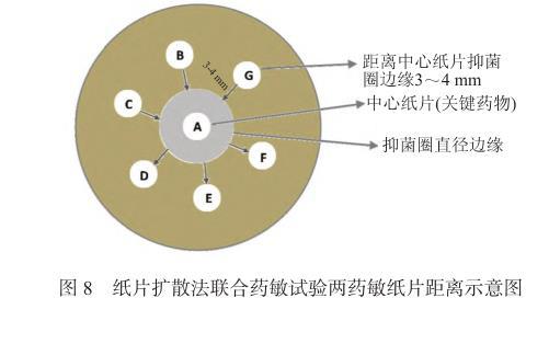 圖7紙片擴(kuò)散法聯(lián)合藥敏試驗圖示