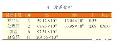 根據(jù)統(tǒng)計(jì)學(xué)數(shù)據(jù)分析,4種樣品間F=0.33<1,即P>0.05,樣品間無(wú)顯著差異,說(shuō)明該測(cè)定結(jié)果適用于不同樣品的檢測(cè);三種方法間F=2.09>F0.05,即P<0.05,三種方法測(cè)定結(jié)果存在顯著差異,即IDF 100A:1987>FDA BAM—2001>GB/T 4789.2—2010。