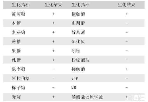 用分離菌純培養(yǎng)物進(jìn)行下列試驗:硝酸鹽還原、尿素酶、靛基質(zhì)、MR、VP試驗、葡萄糖、乳糖、硫化氫、接觸酶、水楊苷、麥芽糖、蔗糖、甘露醇、果糖、木糖、檸檬酸鹽、山梨醇等糖發(fā)酵試驗[3]。接種前在發(fā)酵管中加入2μL的1%的NAD。
