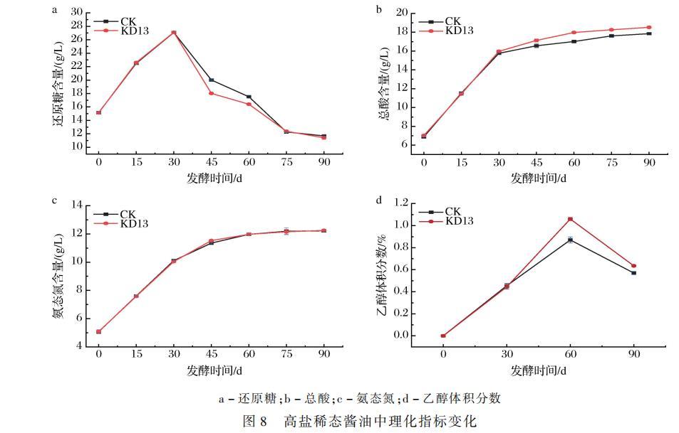 2.3添加K.ohmeri KD13對醬油發(fā)酵的影響