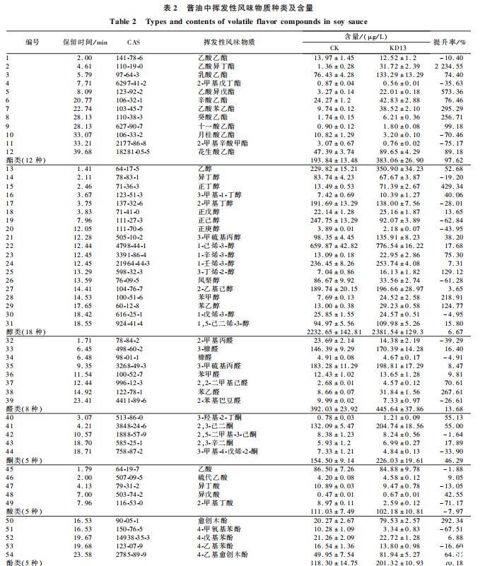 2.3.2添加KD13對醬油揮發(fā)性風(fēng)味物質(zhì)的影響