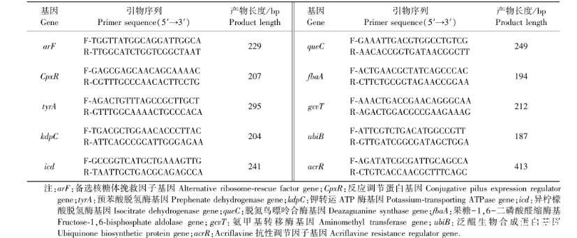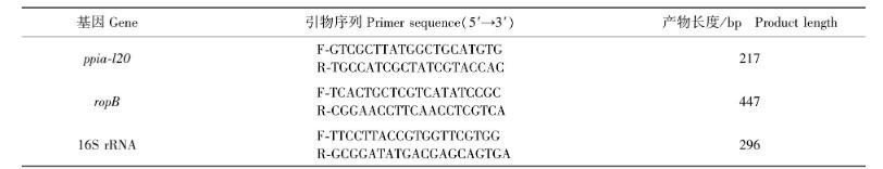 內(nèi)參基因選擇16S rRNA和ropB,利用Primer-BLAST軟件,設(shè)計(jì)引物序列。引物由生工生物工程(上海)有限公司合成。內(nèi)參引物序列見表1。