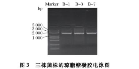 圖3三株菌株的瓊脂糖凝膠電泳圖