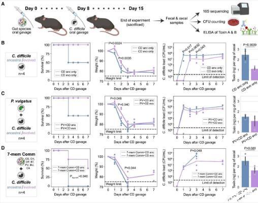 演化適應(yīng)的艱難梭菌菌株在哺乳動物腸道中減輕了疾病嚴(yán)重程度